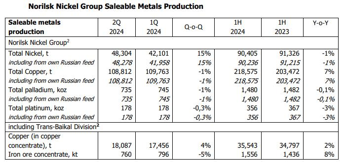 諾鎳表示,2024年上半年鈀金產(chǎn)量同比基本持平,而鉑金產(chǎn)量下降了3%。